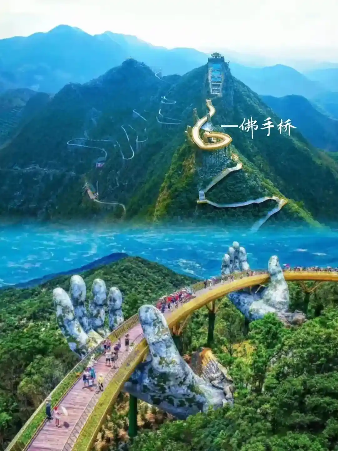 马岭天观佛手桥:一双巨大的手由山中伸出,托起一座金色的桥,震撼级的美景!横亘建德、桐庐、浦江三地交界的崇山峻岭之中,人称“马岭天观”。