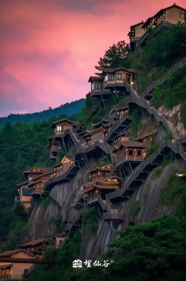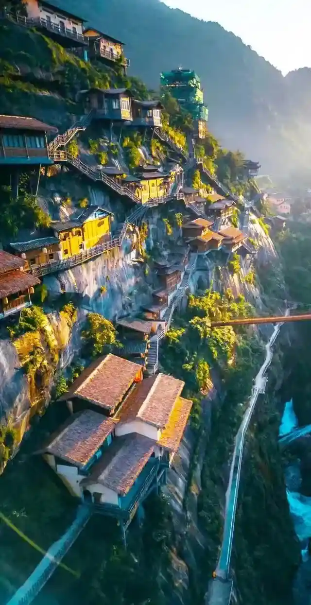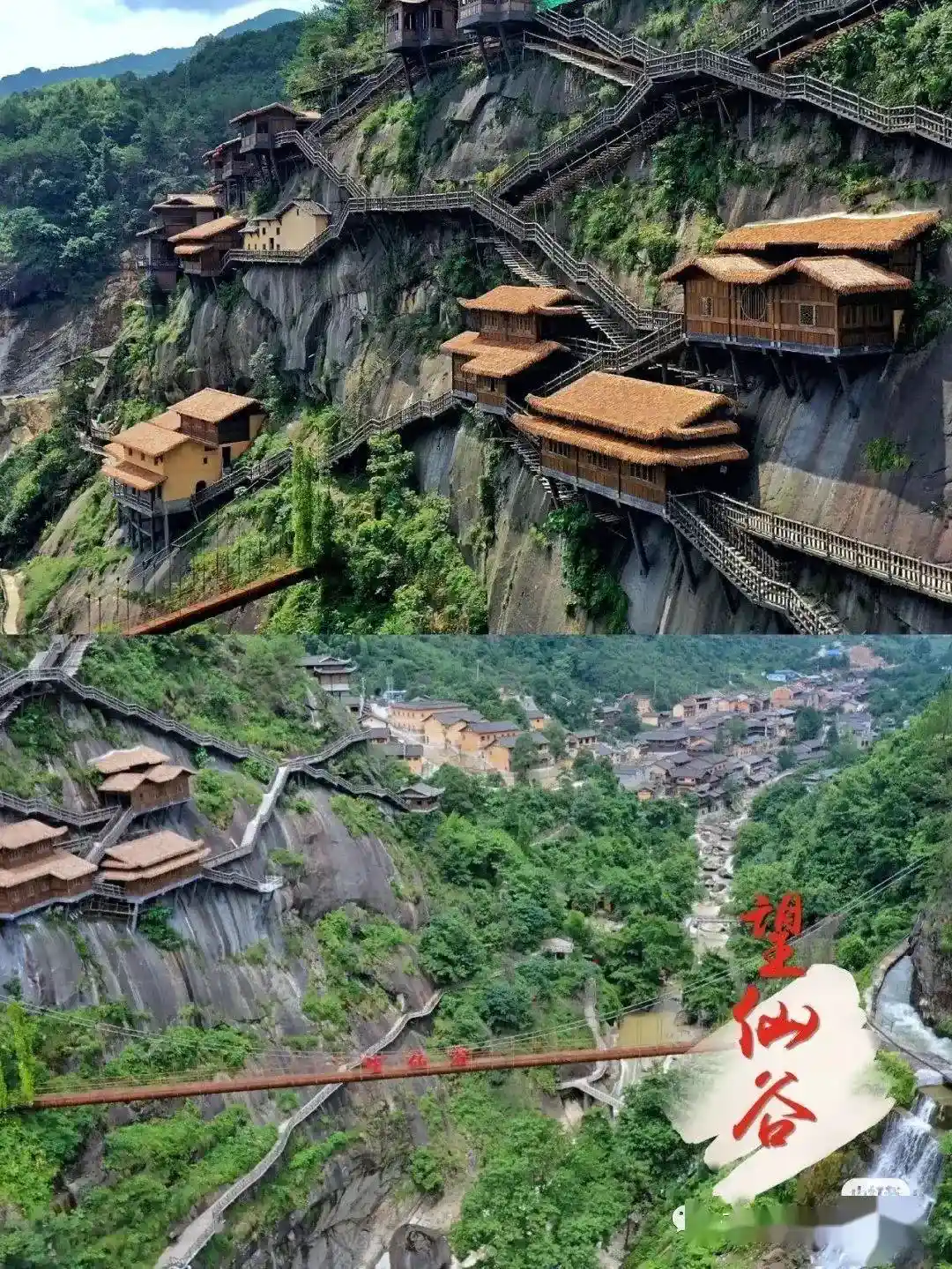 望仙谷里面的悬崖民宿,隐于山谷之中,悬于峭壁之上,令人称惊!