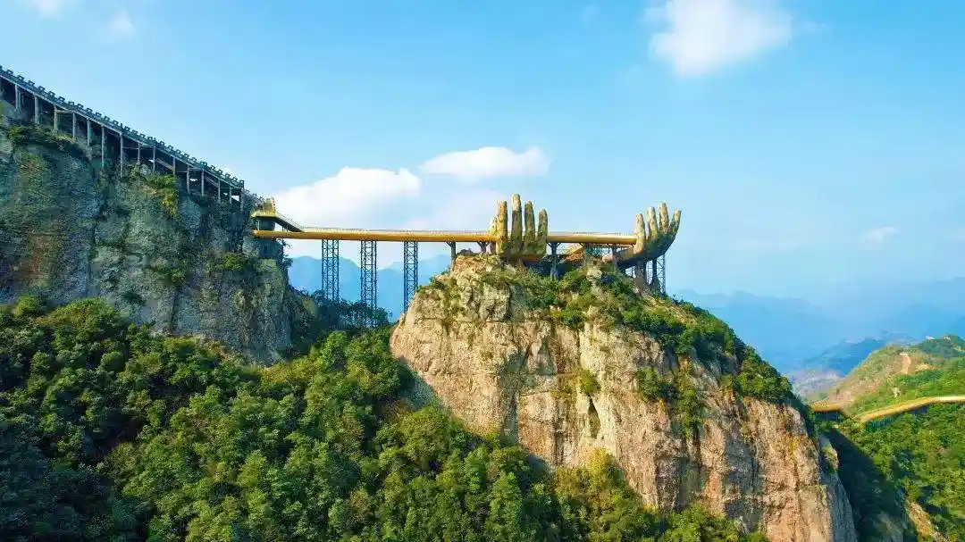 早上6:45指定地点集合,路上团员互相介绍熟悉,导游车上互动小游戏,一路欢声笑语,欣赏祖国的大好河山,车赴游玩网红【马岭天观佛手景区】(赠送大门票+天空之境,游览约3小时)岭天观佛手桥:一双巨大的手由山中伸出,托起一座金色的桥,震撼级的美景!横亘建德、桐庐、浦江三地交界的崇山峻岭之中,人称“马岭天观”。重峦叠嶂如玉龙蜿蜒,悬崖峭壁如宝剑斫伐,擎天石柱横空出世,伫立于群山之巅,马岭古道横列于巍峨群山之间,连接南北数十公里。该项目位于乾潭镇梓洲村,依拖一峰九崖、船冲石、官财岩等优质奇石资源,建设刺激惊险类体验项目,营造充满冒险精神的惊叫体验氛围。后赴酒店入住。
