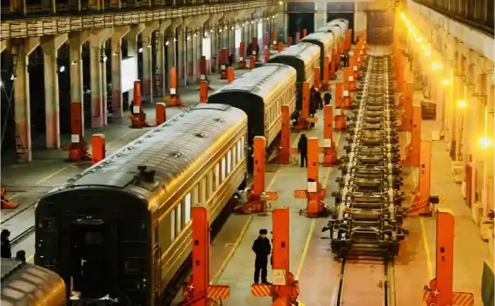 出国前的最后一站内蒙古二连浩特后,列车将会停留4小时左右,在这里,可以看到恢弘大气的国门、界碑以及非常有趣的火车换轮作业(我国的钢轨轨距都是严格依照国际标准的1435毫米,而接下来要经过的蒙古国和俄罗斯都是采用1520毫米的宽轨。)