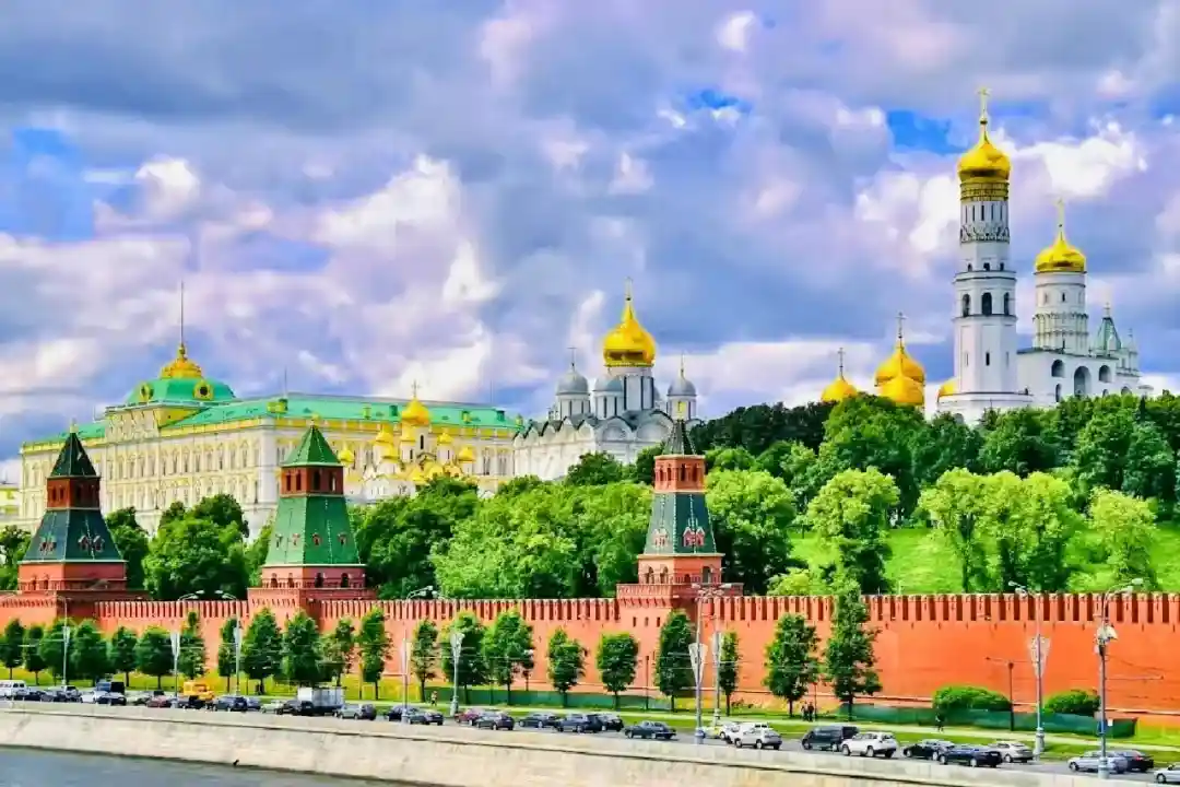 【克里姆林宫】★(入内约1.5小时,克宫每周四闭馆)在俄语中意为“内城”。位于俄罗斯首都的最中心的博罗维茨基山岗上,南临莫斯科河,西北接亚历山大罗夫斯基花园,东南与红场相连,呈三角形。