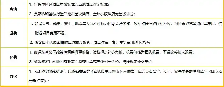 餐饮升级:共8早15正。金环小镇体验俄式风味餐,其他为中式团餐,正餐8美金/人/餐。