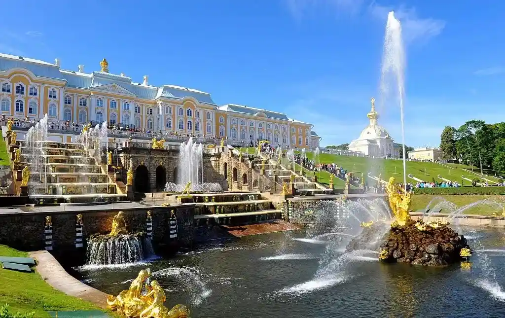【夏宫花园】★(参观约1.5小时)坐落在芬兰湾南岸的森林中,位于圣彼得堡西南约30公里处,是世界上最大的喷泉园林,夏宫花园分为上花园和下花园,是1714年由彼得大帝下令并亲自督造的,因而又被称为彼得宫。
