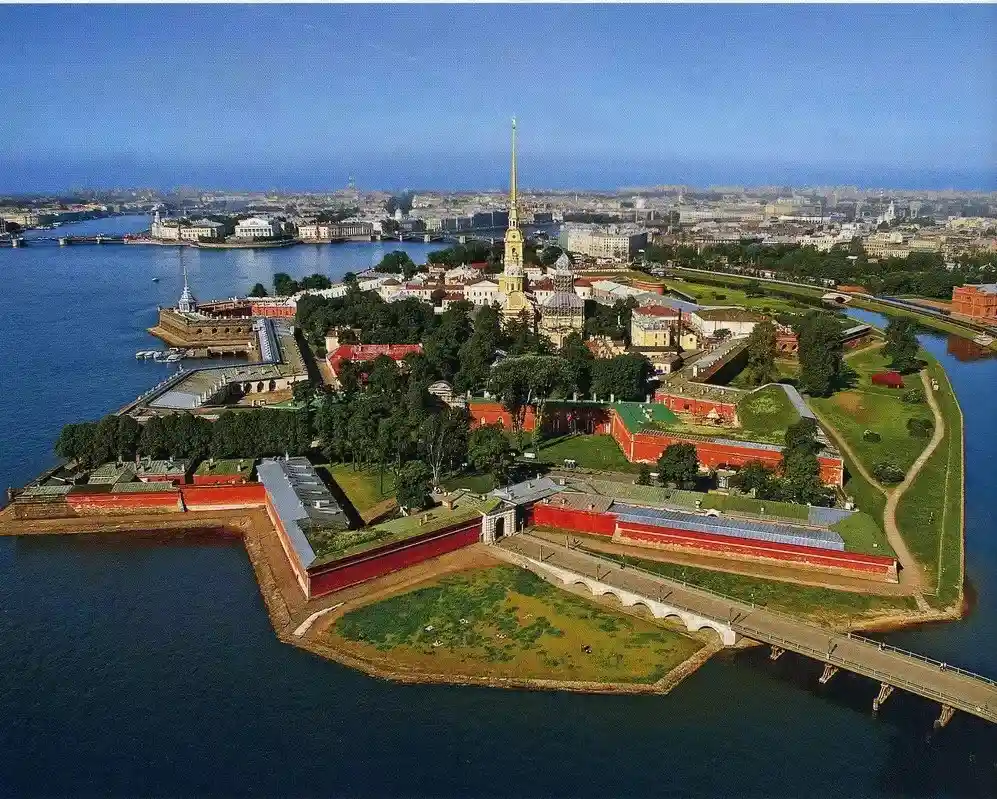 【彼得堡罗要塞】(入内参观约40分钟,不进教堂和监狱)它是圣彼得堡的发祥地,坐落在市中心涅瓦河右岸,是彼得堡著名的古建筑。该要塞于1703年由彼得大帝在兔子岛上奠基,它与圣彼得堡同龄。其中,最著名的是圣彼得堡大教堂,教堂的钟楼尖顶是俄国占领靠涅瓦河以及波罗的海边土地的象征。其高度为122.5米,至今仍是全市最高建筑物。