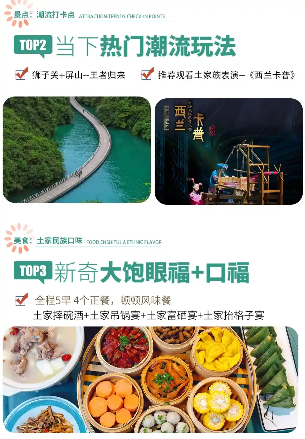 恩施大峡谷地面缆车+恩施大峡谷景交+狮子关景交+梭布垭石林景交+屏山船票+屏山换乘车+综合服务费(当地现付给导游,报名参加此行程即表示认可本必消套餐)