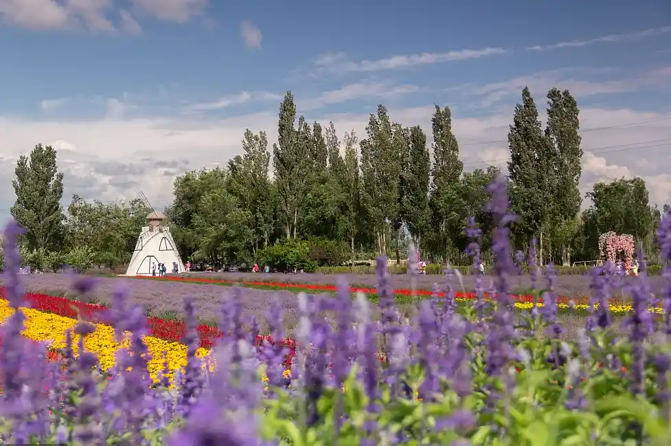 --而后参观【天马文化园】(游览1小时),昭苏天马文化园项目位于昭苏喀尔坎特草原,总面积五万亩,约合33平方千米。文化园项目总投资约6100万元,总建设面积43000平方米,包括西域赛马场看台、门禁、游客服务中心、景观大门、生态停车场、天马博物馆等基础设施,是目前全疆最好、最规范的国际标准化草原生态赛马场,可提供世界名马展示、伊犁骑乘马骑乘体验服务,开展专业马术运动、训练及比赛,同时也是疆内外游客草原观光、民俗体验、马匹骑乘的胜地。与此同时,昭苏天马文化园的建设更是对天马文化的继承和传播,是对“牧歌昭苏、天马故乡”的进一步深刻阐释。也有机会看见天马浴河场景,晚住昭苏。