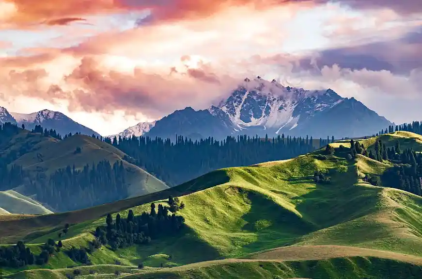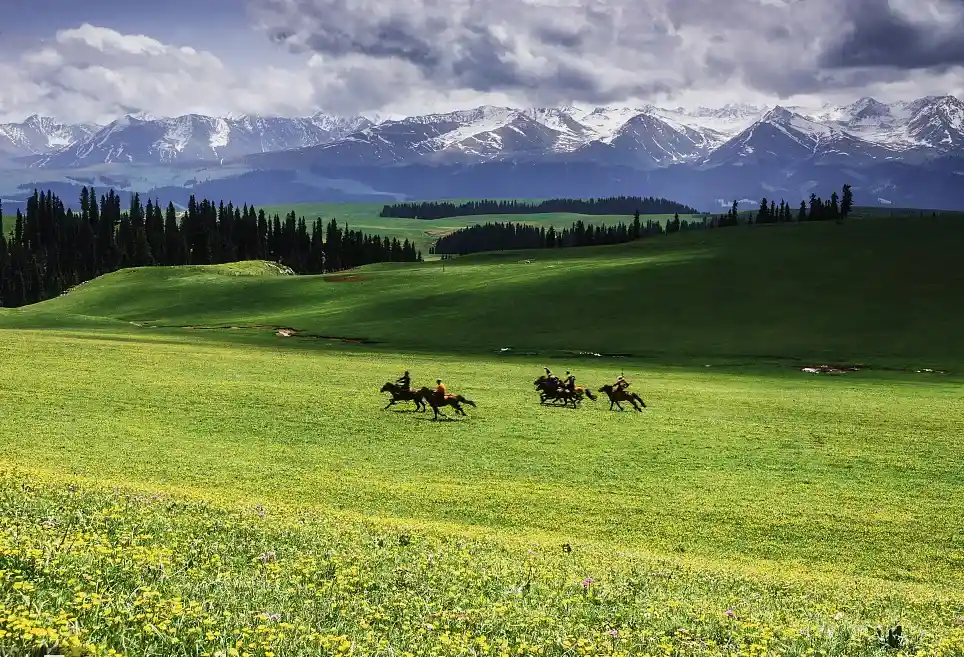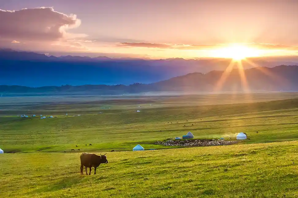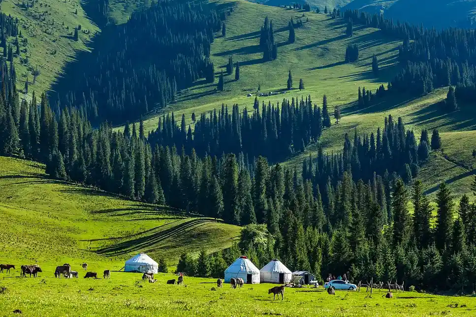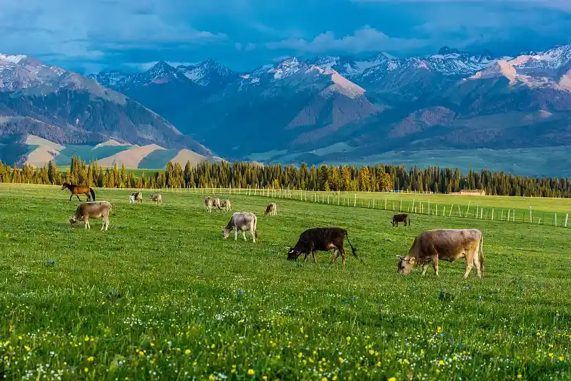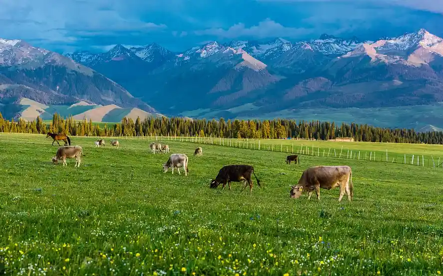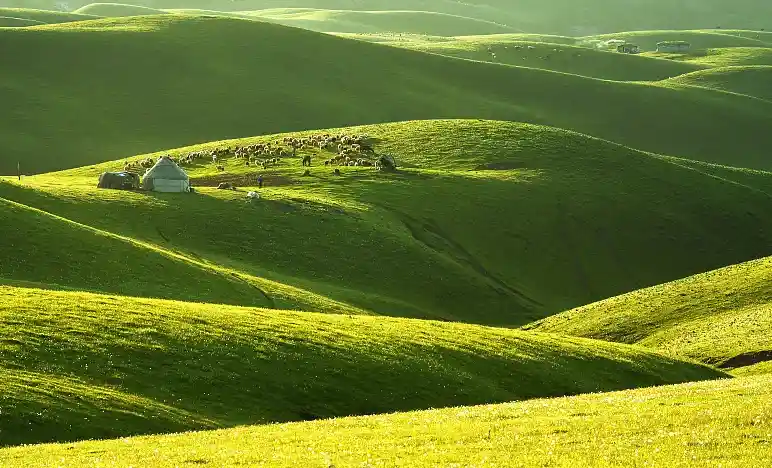 --早餐后,前往国家5A风景区一【那拉提大草原】(游览时间不少于3小时),乘坐区间车游览高山河谷草原风光。体验“天苍苍野茫茫,风吹草低见牛羊”的塞外江南风光,欣赏峻岭、松林、草原,感受哈萨克民族风情及其草原文化。