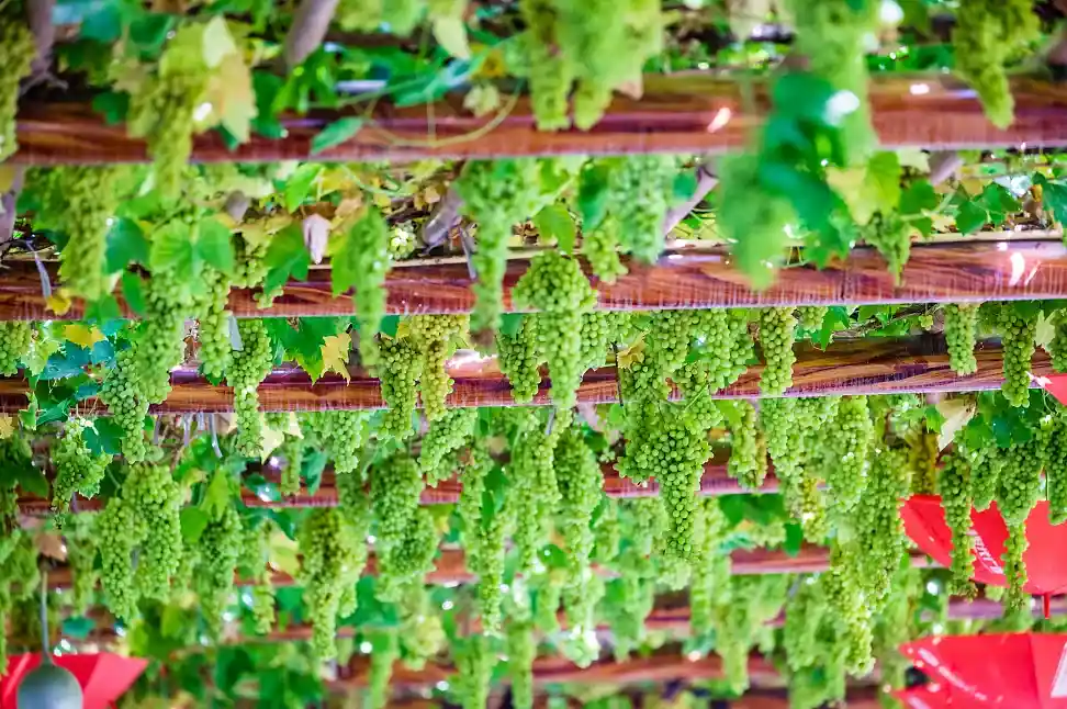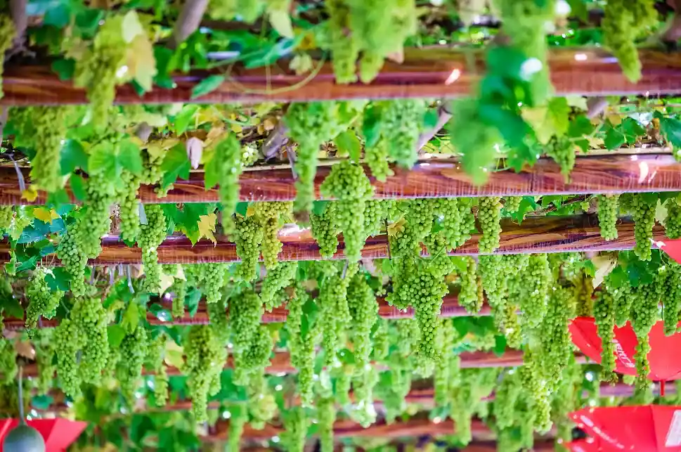 --参观“消凉世界”吐鲁番世界的【葡萄沟】(游览1小时)维吾尔家访,品尝甘甜的水果。