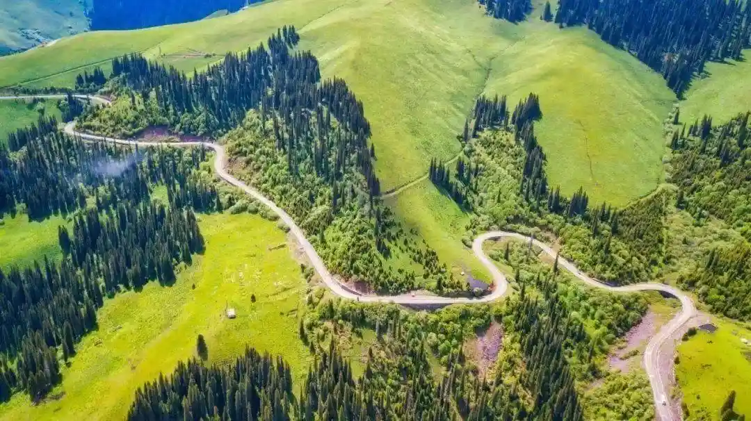 --早餐后穿越举世闻名的“伊昭公路”-一条无数360°大转弯的惊险山路,一条风光旖旎的景观大道,蓝天白云触手可及,雪山、林海、草地、溪流,这里任何一个角度都是风景。