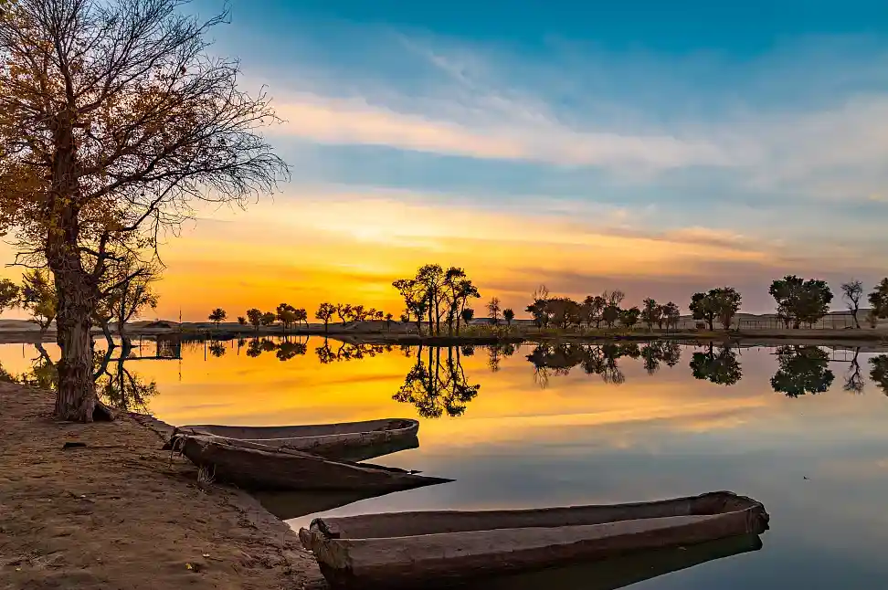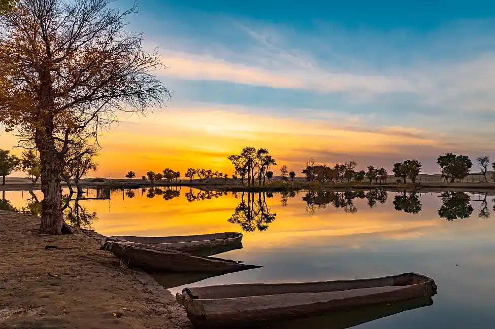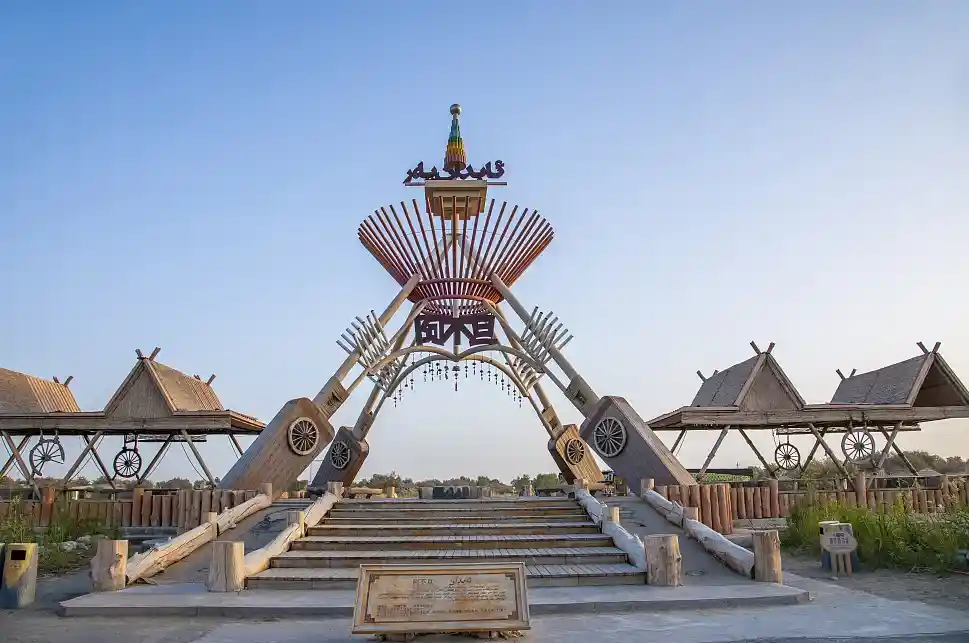 --早餐后,乘车前往尉犁县,参观【罗布人村寨】(游览2小时),参观茫茫沙漠风光,塔里木河,胡杨林,倾听百岁罗布老人的过去。