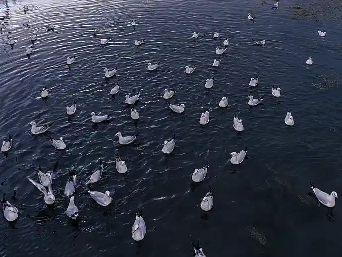 排成行的大雁候鸟,延绵宽广的海岸线