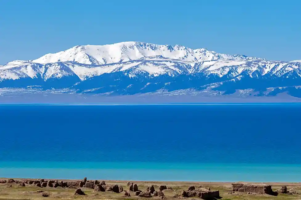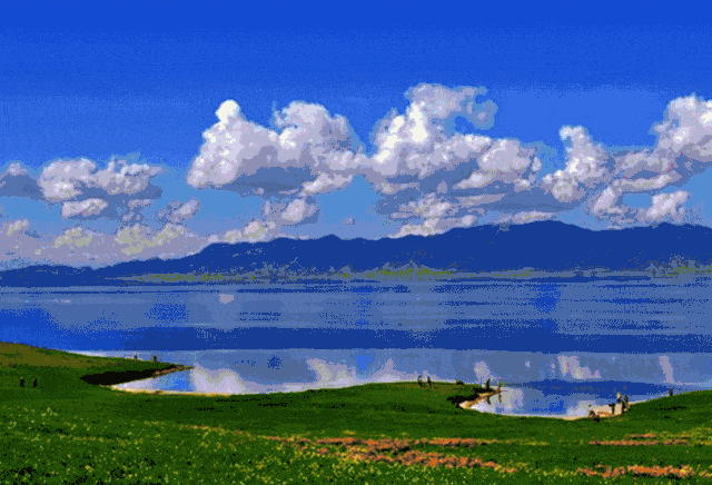1、博斯腾湖水洁沙幼,烟波浩渺,水天一色。