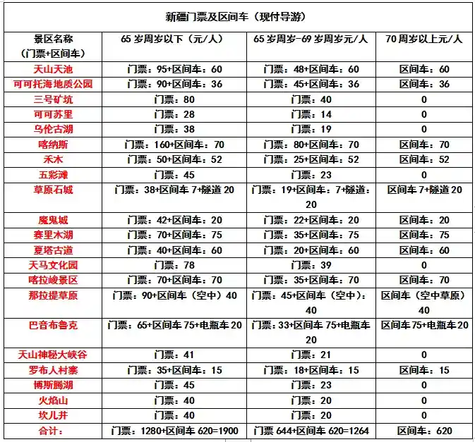 1、不含景区门票+景区交通费用,当地付导游(明细如下,若遇政策调整,以入园当日为准!)