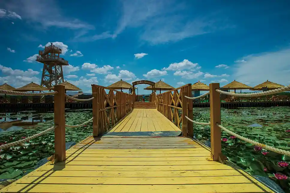 --返回库尔勒,游览【博斯腾湖】莲花湖(游览2小时),博斯腾湖古称"西海",唐谓"鱼海",清代中期定名为博斯腾湖,是中国最大的内陆淡水吞吐湖。博斯腾淖尔,蒙古语意为"站立",因三道湖心山屹立于湖中而得名。湖面海拔1048米,东西长55公里,南北宽25公里,略呈三角形,大湖面积约988平方公里。蓄水量99亿立方米。大湖西南部分布有大小不等的数十个小湖区,小湖区有较大的湖泊,总面积为240平方公里,湖水西东深,最深16米,最浅0.8米,平均深度约10米左右。总面积1646平方公里的博斯腾湖与雪山、湖光、绿洲、沙漠、奇禽、异兽同生共荣,互相映衬,组成丰富多彩的风景画卷。大湖水域辽阔,烟波浩淼,天水一色,被誉为沙漠瀚海中的一颗明珠。小湖区,苇翠荷香,曲径邃深,被誉为"世外桃源"。然后途径百里干沟,观赏两侧戈壁风光,前往吐鲁番,抵达吐鲁番后入住酒店休息。