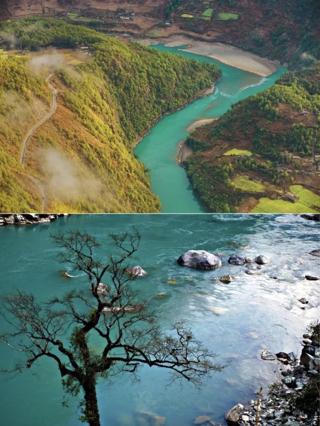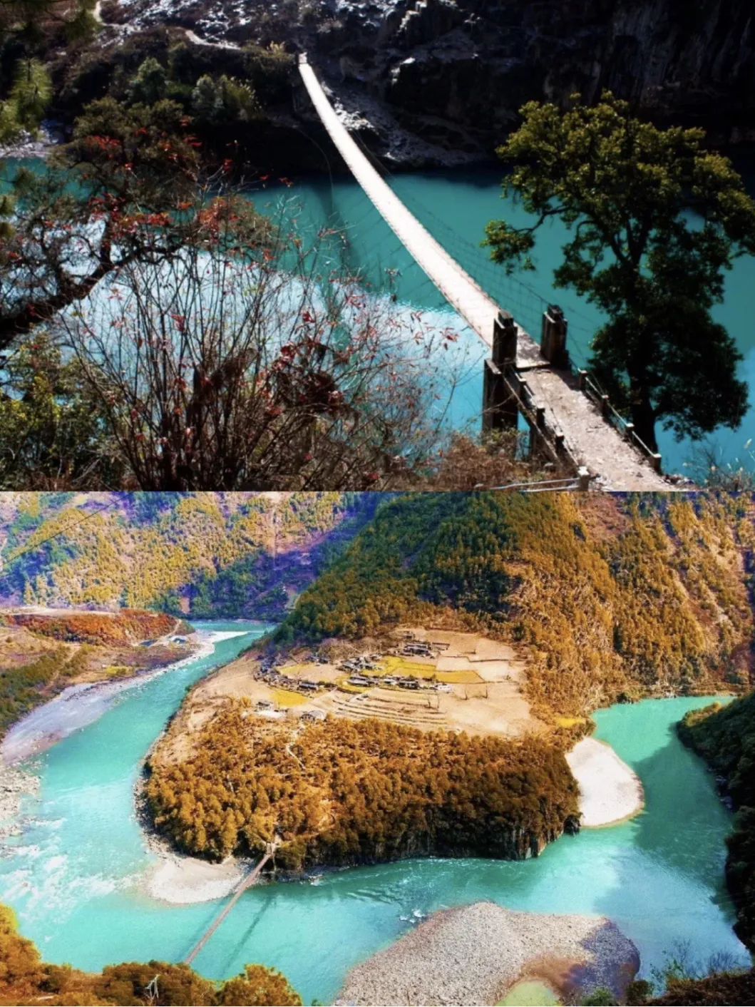 早餐后前往【丙中洛】,拍摄世界自然遗产“三江并流”的核心区【怒江第一湾】,怒江第一湾观景台位于日丹村附近,湾中心有一个村子叫坎桶村,这里两山夹一江,江两岸是碧罗雪山和高黎贡山,形成了典型的峡谷地貌。酌情自行徒步参观丙中洛扎那桶村,因当地人每年都过桃花节,故称为"【桃花岛】"。沿219滇藏新通道西行,途观【天险石门雄关】,游览【雾里村】,雾里村是一个传统的怒族村落,这里没有城市的喧嚣,只有狗吠深巷,溪水汩汩,竹楼、木房错落有致,景色优美,民风淳朴,是一块真正的人间净土,给人以返璞归真之感。可徒步【茶马古道】,进入【那恰洛大峡谷】,这是怒江大峡谷云南段的开始,马帮至今人仍在穿行的滇藏通道。随后前往【秋那桶】(因秋那桶村路况有限,车辆不能上山,需徒步2公里左右,或是自费30元换乘车代步),秋那桶村是怒江大峡谷北端的最后一个与世隔绝的村子,也是怒江的终点。随后经丙中洛检查站行至网红打卡地【滇藏界】拍照留影,之后返回丙中洛,前往【福贡县】晚餐后入住酒店