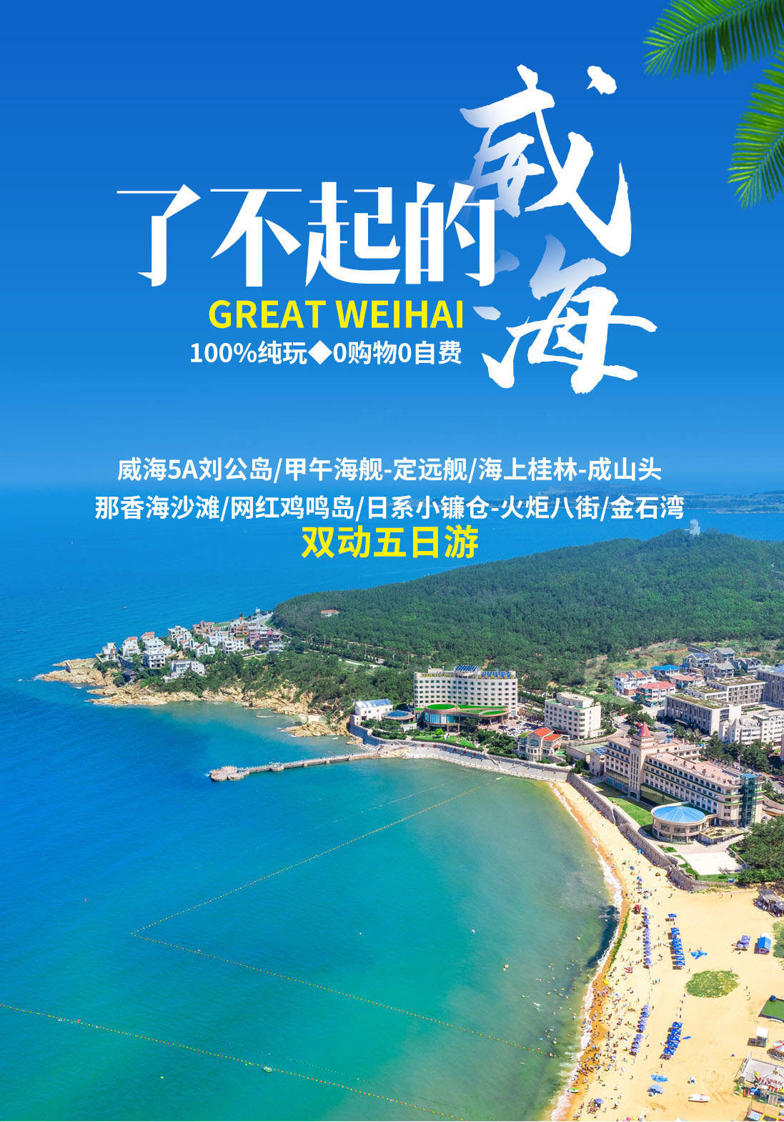 海岛旅行不妨从威海开始,山东这个超文艺海滨,天蓝水清,遍地美食,带你吃喝玩乐无限嗨!了不起的威海双动5日仅需¥1899起!
