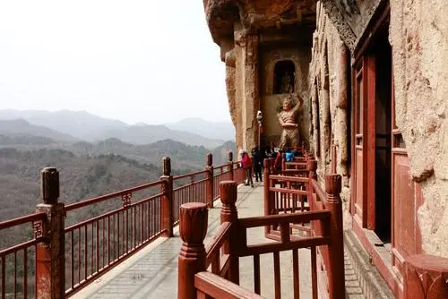 抵达天水后导游接团乘车前往——【麦积山石窟】(约2小时),位于甘肃省天水市麦积区,世界文化遗产,国家5A旅游景区,国家重点风景名胜区,国家森林公园,国家地质公园,全国重点文物保护单位,中国四大石窟之一,2014年被列入世界文化遗产名录。因山形酷似麦垛而得名。沿着山体间修建的木栈道层层而上,沿途欣赏洞窟、泥塑石雕、壁画,其精美的泥塑艺术使之闻名世界,被誉为东方雕塑艺术陈列馆。