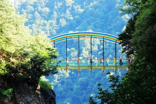 早餐后游览——【官鹅沟国家森林公园】(约3小时)位于甘肃省宕昌县城郊,地处青藏高原东部边缘与西秦岭、岷山两大山系支脉的交错地带,衔接世界文化遗产九寨沟风景名胜区。官鹅沟水美。13个大小不等、形态各异的湖泊,犹如一串绿色的珍珠镶嵌在沟内,湖水清澈透底,随湖底地貌高低呈不同颜色,那些倒映在湖中的古树像一条条巨龙卧在湖底。蓝天白云和青山古树,映入湖中,使天地浑然一体,没有界限。官鹅沟雄伟。在海拔1760米~4150米之间,群山错落,绿水环绕,古树参天,气象万千。雄伟处绝壁悬崖直插云霄,气势恢宏,蔚为壮观,处处都是山水画。官鹅沟奇险。在湖泊和雪山之间,9道险峻深幽的峡谷让人惊叹不已。在长数百米、高数百米、宽仅十米的各种形态的峡谷中,河水震耳欲聋,凉风扑面而来,悬崖古松掩日,瀑布飞泻直下。游人至此,有身处绝境之感,如此鬼斧神工的自然奇观,实属国内之罕见。一诗人欣然赋诗:“揽胜偏怜日月长,鹅沟炎夏水风凉。奇峰叠翠通幽谷,雪浪喷珠泻石梁。万木欣荣青带玉,重崖森迥瀑飞先,绿荫满抱姿游兴,珠粉岩边野卉香。
