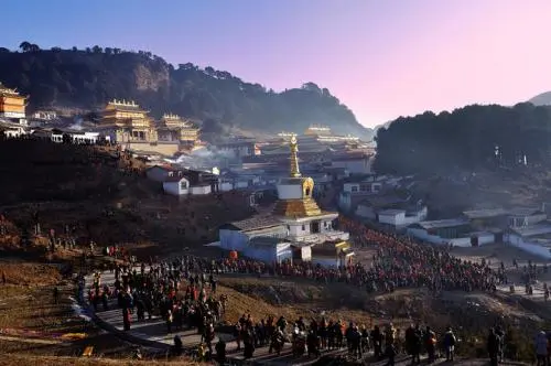 早餐后驱车5-10分钟或步行抵达东方小瑞士之称的——【郎木寺】(约2.5小时)郎木寺同时也是四川格鲁派寺庙达仓郎木格尔底寺的简称。在郎木寺沟里有两个隔河相望的寺庙:一座是四川的达仓郎木格尔底寺,另一座是甘肃的赛赤寺。主要游览赛池寺,后山还有安多藏区唯一对外开放的天葬台,郎木寺的发源地是四川境内的郎木寺大峡谷,在峡谷内有郎木洞、虎穴、和白龙江源头