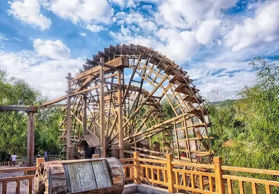 后游览——【水车园】(约0.5小时)又名天车、翻车、老虎车。为明嘉靖年间(公元1522年--1566年)进士段续所造。至今已有近500年的历史。兰州水车是一种利用黄河水流自然的冲击力的水利设施,水车轮幅直径达16.5米,辐条尽头装有刮板,刮板间安装有等距斜挂的长方形水斗;