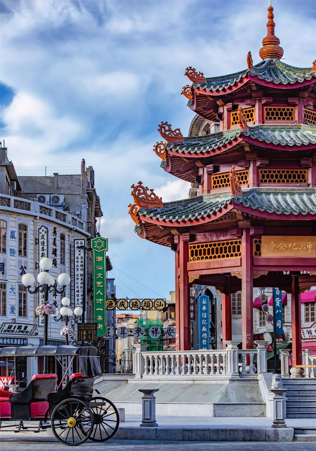 潮州牌坊街是全国独一无二的文化景观,位于古城中心,是集非物质文化遗产、传统工艺、特色小吃等为一体的文化古街。 牌坊街特色建筑是中西合璧的骑楼,矗立的22座中式明清石牌坊与两侧南洋风味的骑楼互为映衬,明末清初引入具有南洋建筑风格的骑楼建筑,形成中西合璧的独特侨乡风貌。