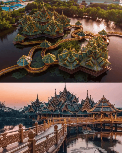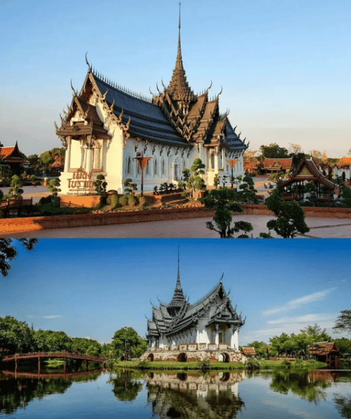 暹罗古城是世界上最大的文化遗产博物园,其中包括了泰国72府120多座美轮美奂的建筑(按照70%-100%比例复刻),由创始人Lek林国华先生于1963年起建造,是曼谷周边最有纪念意义的打卡地,也是众多热门泰剧的拍摄地。