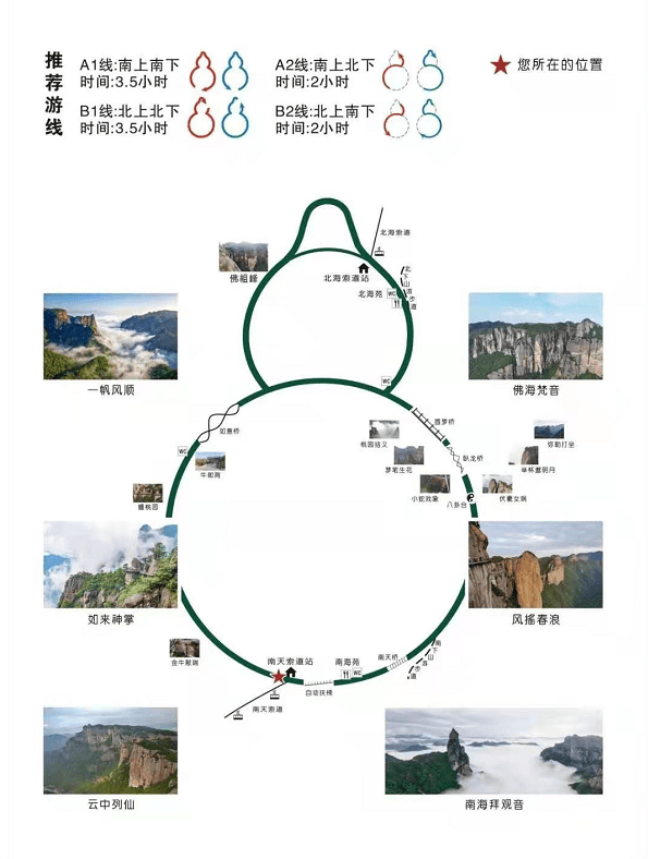 ▲景交:上行索道65元/人,下行索道55元/人,根据身体状况自理