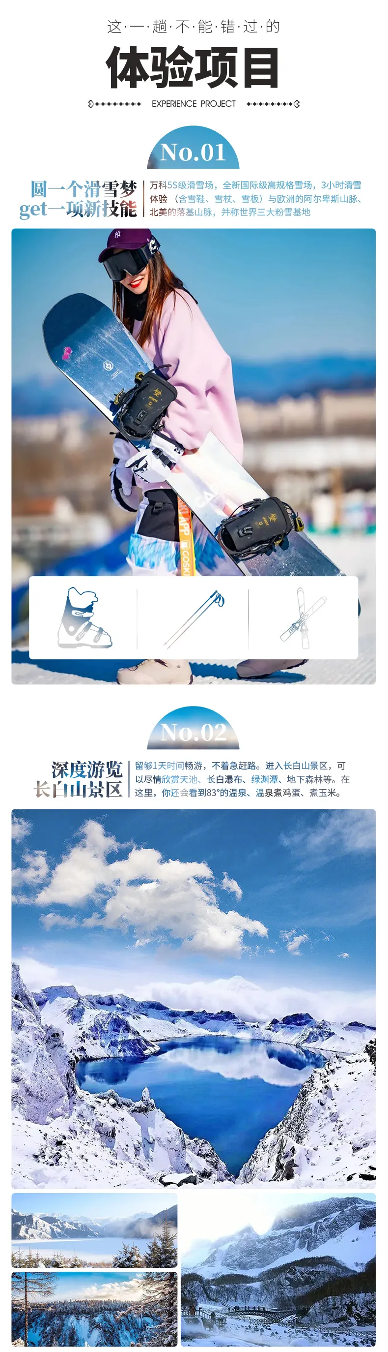 【1】小交通:不含当地必乘景交,当地现付导游:长白山35+85+80元,滑雪头盔30,镜泊湖景交30,教练、租雪服视个人情况。