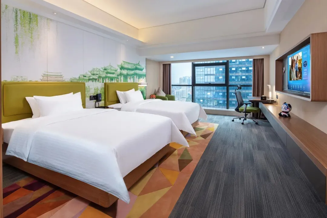 酒店设计时尚现代,拥有希尔顿欢朋特色的“HUB式”大堂,集欢迎、聚会、休闲和商务功能于一体。 客房使用美国“Hampton Bed”标准的舒达双专利床垫和生态认证床上用品,打造云端甜梦体验。 采用“Peter Thomas Roth”洗浴用品,以纯天然的成分打造馥郁舒缓的沐浴感受,更有全球高端卫浴品牌,带来舒心的沐浴体验。