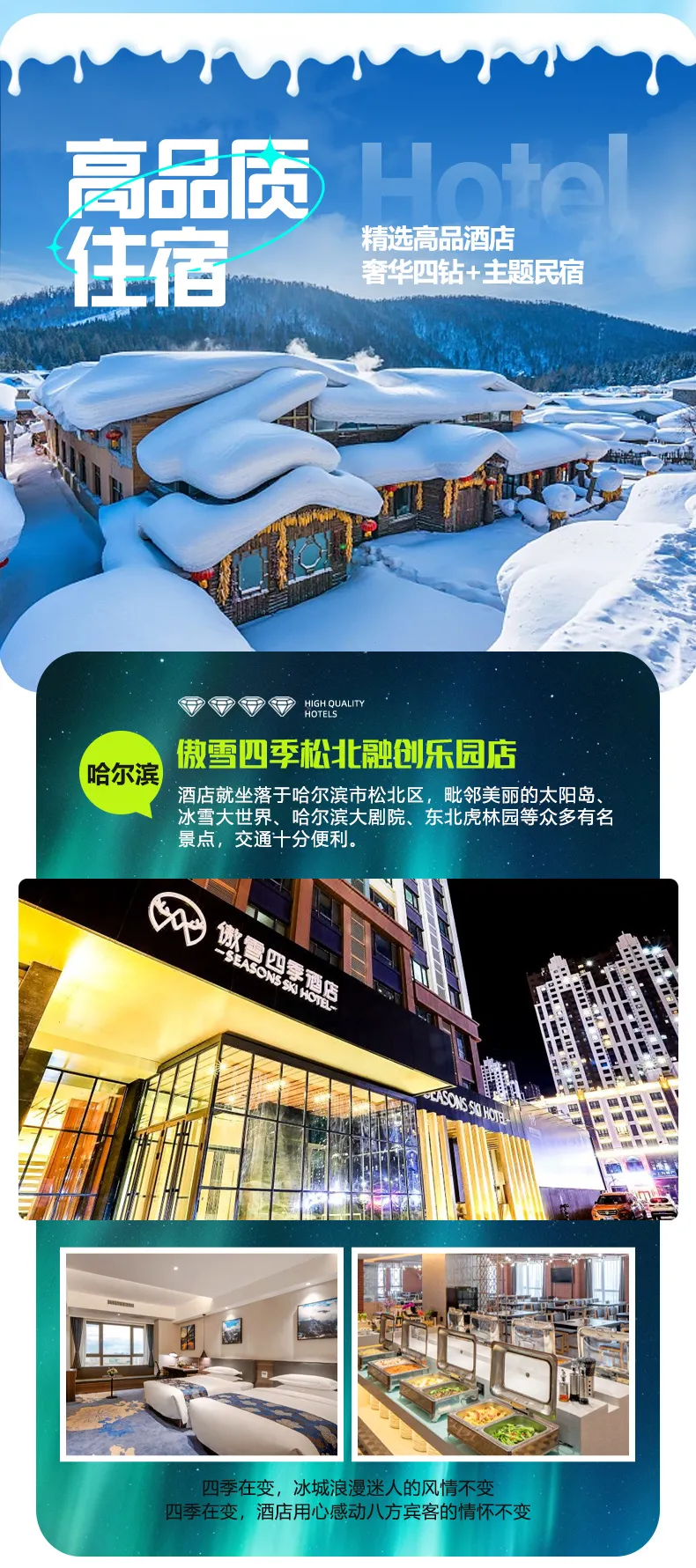 哈尔滨四钻参考酒店:傲雪四季、景辰、松悦酒店、悦华东方或同级