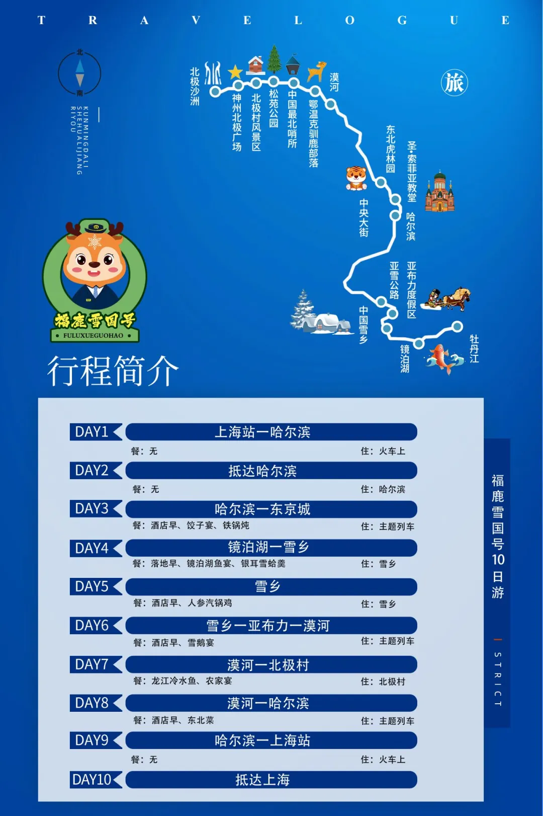 从上海出发,10天9晚的旅行里,用舒适的方式跨越千里雪国风光,去往中国极北,更可以滑雪游牧喂驯鹿…