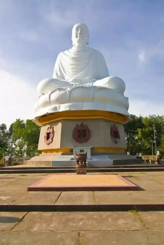 龙山寺 (Long Son Pogoda) 建于 19 世纪后期,其后历经修缮,现在 还是有很多僧侣在这里修行。龙山寺的吸引人之处在于其后山的白色大 佛。在芽庄市区任何地方都能看见这座巨大的白色大佛,安坐于莲花之上, 俯视众生的欢乐与烦扰。如果选择从侧边的小路下山,还可以看见另一 尊白色的卧佛。途中也可以看到很多墓园,想来很多越南人也想在僧侣 的经文中,寻求安宁。