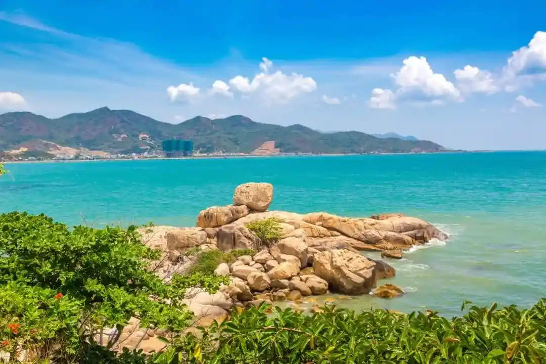 早餐后根据与导游约定时间集合,乘车前往芽庄著名的【五指岩】(游览时间40分钟),芽庄五指岩位于芽庄城北,突起的岩石向着大海的方向延伸,是芽庄少有的花岗岩海岸,所以它又叫钟屿石岬角,这是一个大自然缔造的特殊景观,有人说从空中望去,一簇岩石伸向大海,犹如一只巨掌覆盖在海滩上,站在这里可以看到有许许多多的礁石重重叠叠在海滩上。其中有一巨石独领风骚,上面有一个栩栩如生的五指手印。这里还是法国电影《情人》的外景拍摄地,所以五指岩又称为情人岛,在这个地方你可以看到许多情侣来祝愿自己的爱情长长久久。