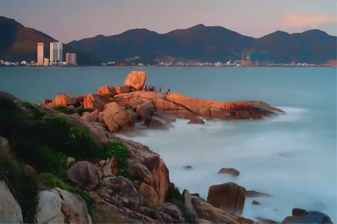 芽庄五指岩又叫钟屿石岬角,位于芽庄主城北面。五指岩石芽庄少有的花岗岩海岸,旅游热点。这里自然风景与人文相结合,虽然景区不大,但是,展现了海岛风光与乡土风情相结合的缩影