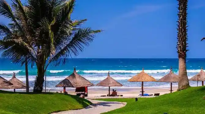 早餐后根据与导游约定时间集合,乘车前往距离芽庄市区一个小时的车程的【天堂湾】,景区代表了芽庄闻名于世的所有优点:这里碧海蓝天,微波起伏,椰风婆娑,阳光明媚。视野开阔,空气清新,脚踏细软白色的沙滩,迎面扑来的和煦海风,让你可以自由的在这里嬉戏玩耍,带有青蓝层次的海水,天气晴朗时蓝天白云,远处岛屿星星点点,你可以自费参加各自海上活动,骑摩托艇、皮划艇、海上拖拽滑翔伞、潜水等应有尽有,也或是什么也不做,躺在沙滩椅任海风拂面,静听波涛阵阵,享受日光浴,品尝鲜榨果汁,特别赠送水果大餐,感受一次热带水果的美食盛宴。