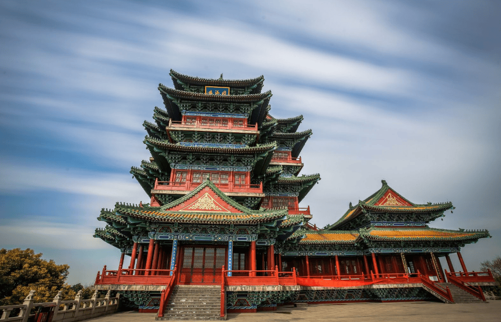 南京阅江楼位于长江南岸的狮子山巅,护城河环绕着狮子山。阅江楼仿明代建筑,红色的柱子,金色琉璃瓦覆顶,鲜艳夺目。登上阅江楼远眺,浩瀚的长江风光一览无余,令人心旷神怡。
