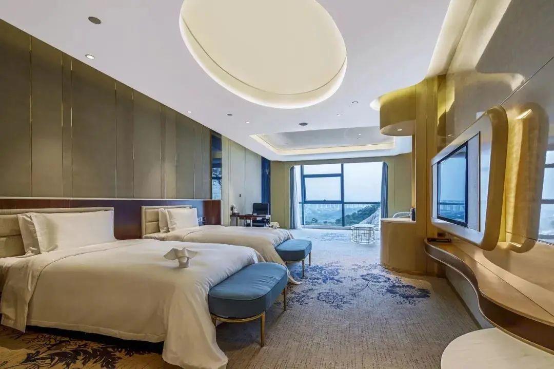 整体建筑形态呈未来主义风格,尽展奇幻多姿之妙。山水相融之处,建筑依崖而建,俯瞰全城;云雾缥缈之间,白鹭盘旋,客房飞瀑环抱而生,百米银川直泻而下,落于璀璨大堂,宛若仙境花园。