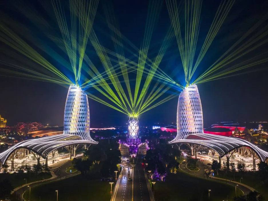 欣 赏【海花岛灯光秀】欣赏顶级声光电技术打造的光影盛宴,绚丽夺目的灯光与美轮美奂的建筑交相辉映,灯光璀璨、流光溢彩。