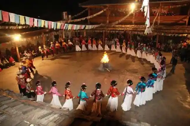 晚上观看藏族有特色的歌舞表演-【土司宴】(游览时间约90分钟)品藏家牦牛小火锅,青稞面,酥油茶等,观看特色民族风情晚会。