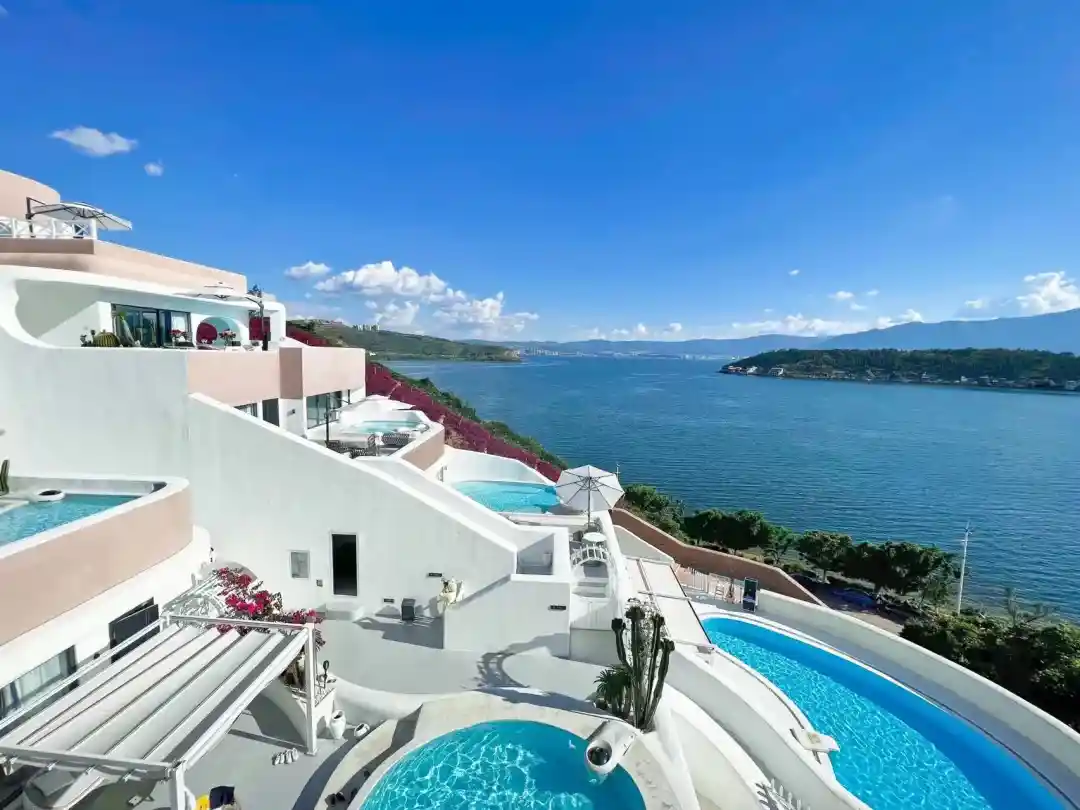 早餐后前往打卡大理抖音最网红景点,有中国圣托里尼之称的【圣托尼里】·【理想邦】蓝色浪漫,白色纯净,温柔与风和白云一样恍惚,(带着美美的、帅气的衣服),在这里随便一拍都是大片。蓝天像被洗涤晒干了的蓝色一样浪漫。结束丽江古城发呆的日子,随后乘车前往【洱海观景台】远眺玉几岛、小金梭岛犹如洱海中的一对鸳鸯,悠闲的渔村生活让人享受之中。大理很适合一个人旅游,看洱海苍山发呆,看变化莫测的云发呆,享受一个人的旅游,享受一个人的美好时光…之后乘车前往昆明,抵达后安排入住酒店。