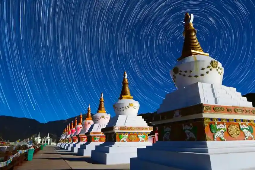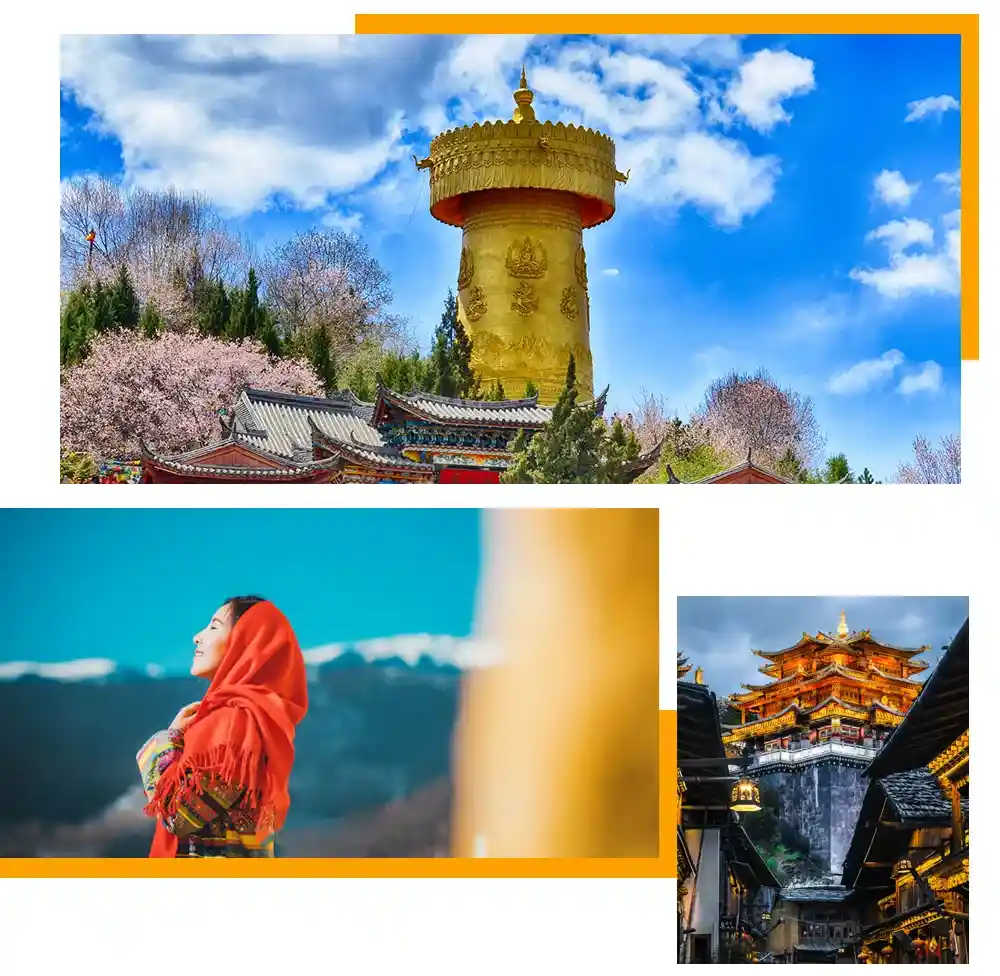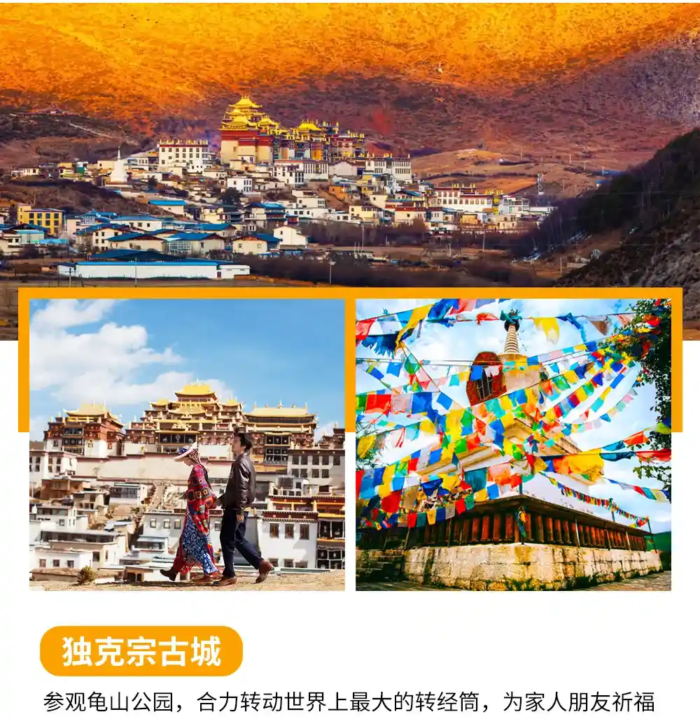 早餐后前往游览【香巴拉时轮坛城】(游览时间约90分钟),坛城于2005年开始建设,经过了十年多的努力,建成了一座非常宏伟高大的建筑,集现代建筑与藏式建筑风格为一体。游览【独克宗古城】合力转动世界上最大的转经筒,为家人祈福!