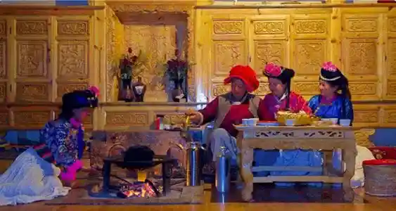 之后乘车开始360度环湖,途经里格观景台,情人沙滩,草海走婚桥。乘车前往小落水参加【摩梭走婚宴】到原始的摩梭人家做客,品尝摩梭特色民族餐。特意安排【摩梭篝火晚会】围着篝火跳起欢乐的舞蹈!