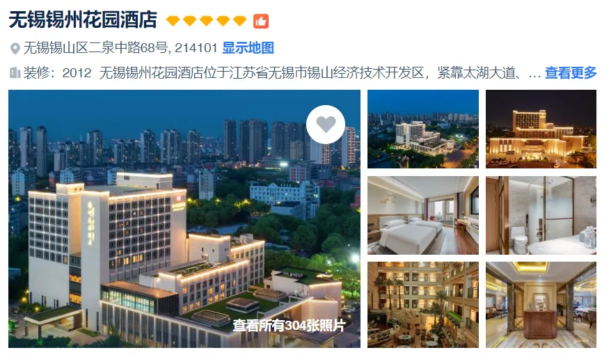★2晚无锡锡州花园酒店