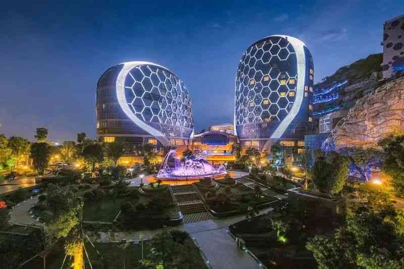 南京蜂巢酒店由上海华昌集团投资 30 亿,占地 81 亩,房间近 500 间,汲取老山蜂巢特色为构思源泉。