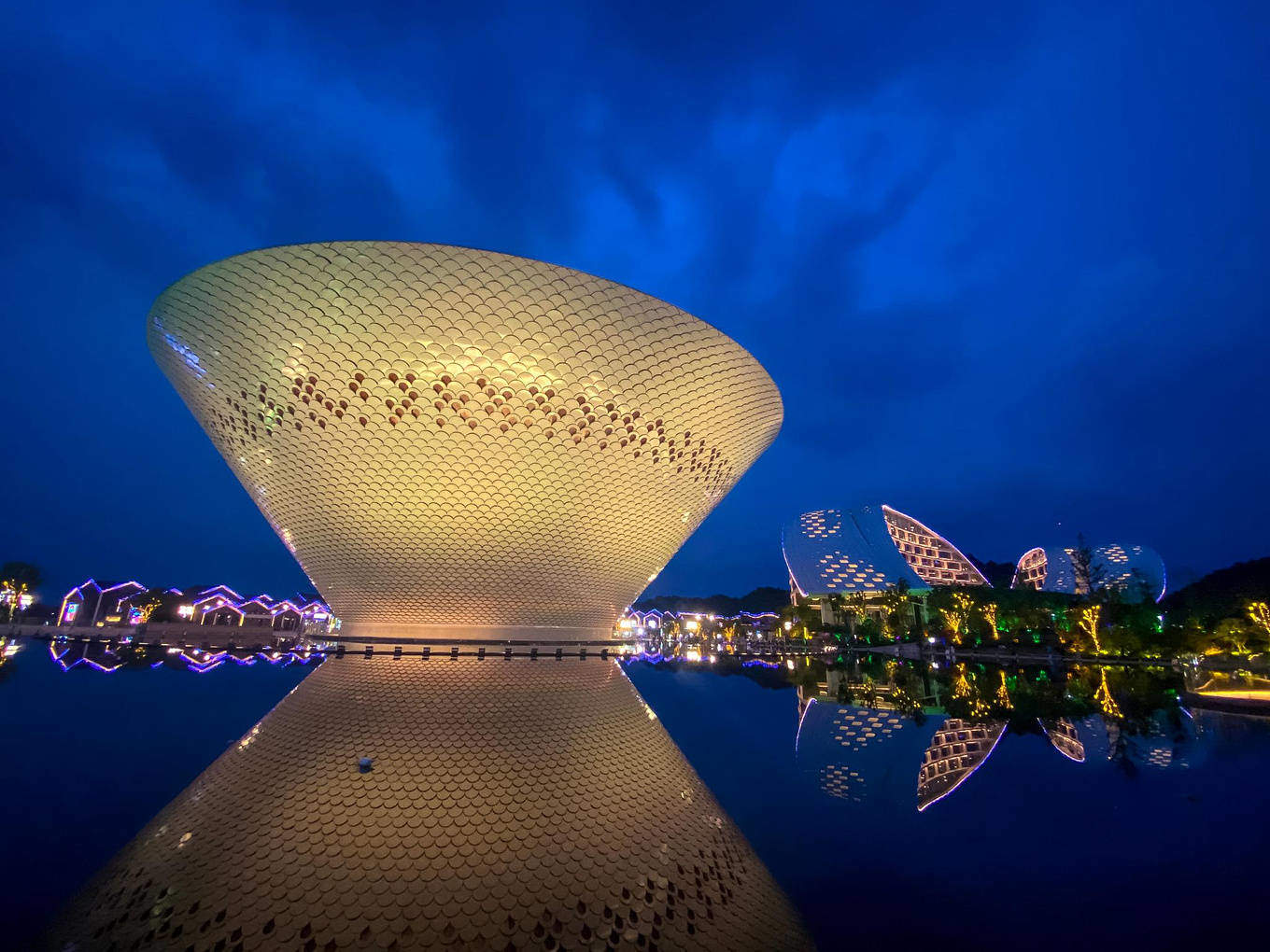 婺女洲度假区以婺女文化为主题,把婺女文化最核心的五境元素“画境、诗境、梦境、幻境、心境”以及徽派生活方式带到度假区的体验中。如果说江南的苏氏园林像位温婉的少女,婺女洲的徽派建筑更像是位风度翩翩的公子,英朗简洁的黑白色彩,不施粉墨,却融山川之美。