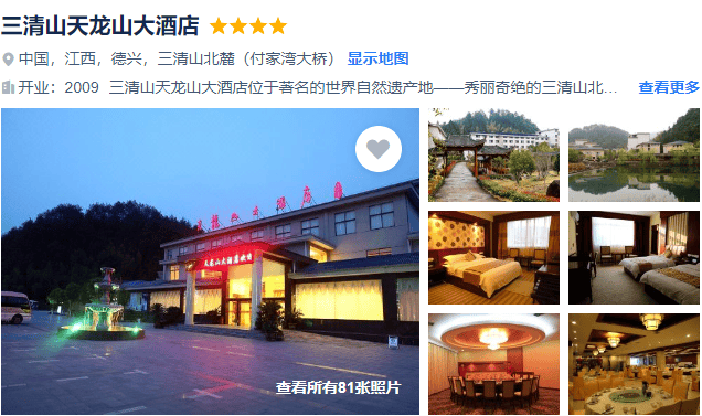 三清山参考酒店:卧龙国际/天龙山大酒店;