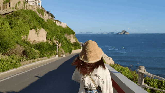 有一靠山面海、沿山而建的建筑群