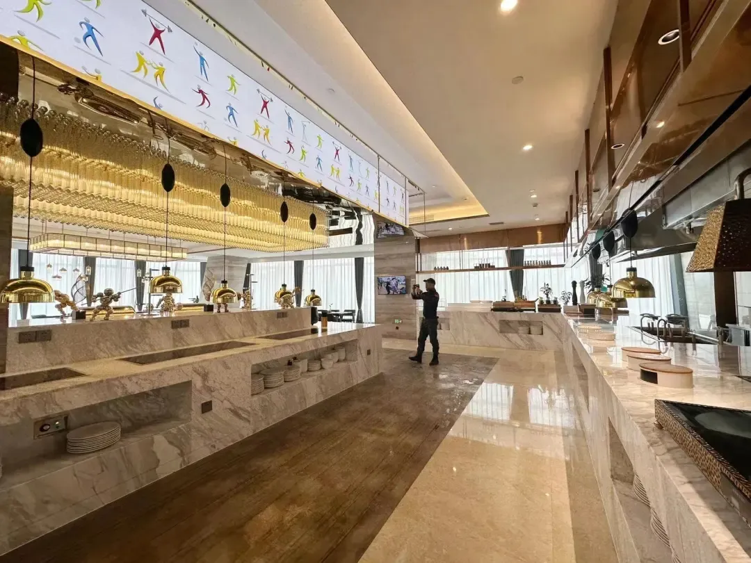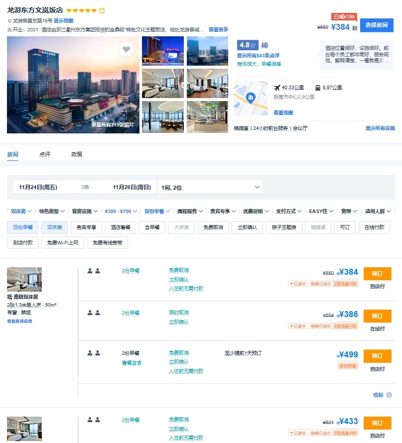客房布置温馨,以简洁、东方艺术为主色调,同时融入了龙游当地的商帮文化元素。拥有个性鲜明,别具风格的特色餐饮包厢6个,全日餐厅、11000平米的宴会、会议区域,可同时接待超2000人宴会用餐或会议接待。此外,酒店拥有双层地下车库,停车场地有4.4万平方米。车库内车位1000余个,汽车充电桩100余个,确保您停车无忧。还有与之相配套的大型商场,巨幕影院,运动城,是接待会议,宴会和休闲的首选之地。