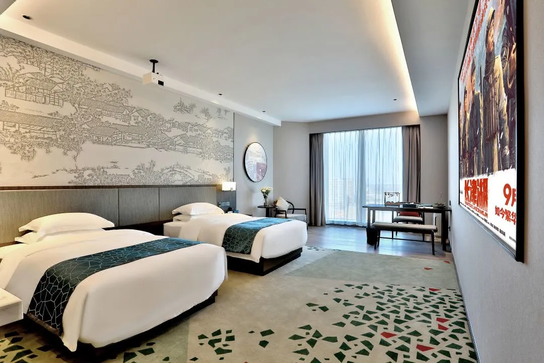 饭店总建筑面积4.5万多平方米,由2幢主楼1座裙房组成,拥有各类型高端客房。分别以纸之仁、竹之节、书之智、锦之礼为主题。