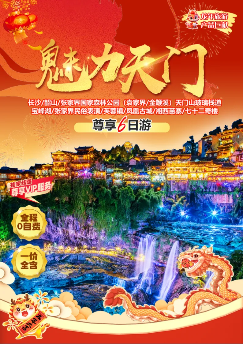 春节【魅力天门】张家界2888起一价全含/韶山/凤凰/苗寨/芙蓉镇/天门山/张家界森林公园/民俗表演/宝峰湖/土司王府